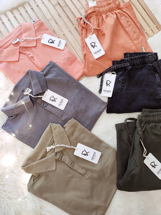 تیشرت یقه دار جودون بهمراه شلوارک کتان درجه یک تک سایز 🔴