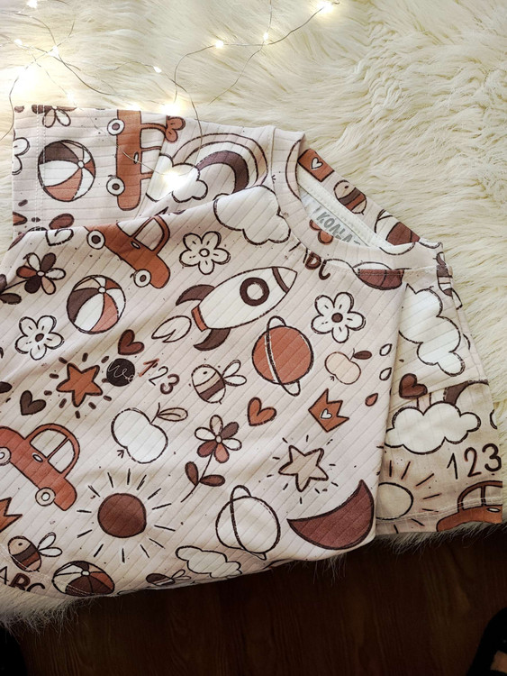 سایز ۷/قد از سرشانه۵۵/پهنا۴۳/قد شلوارک از کمر۴۳