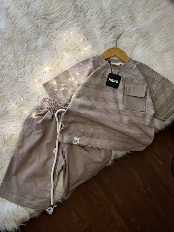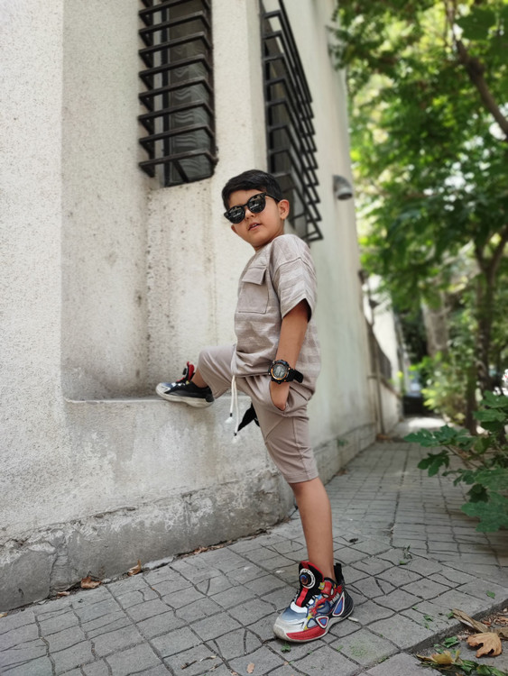 ست پسرانه تیشرت و شلوارک کاملا نخ پنبه و ضد حساسیت ، مناسب مهمانی ، شیک و اسپرتذ