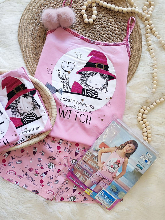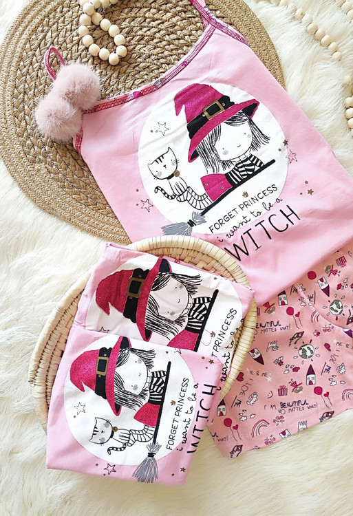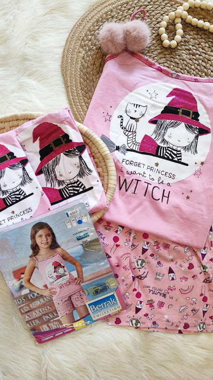 تاپ و شلوارک کلاه دخترانه صورتی تمام نخ ترک