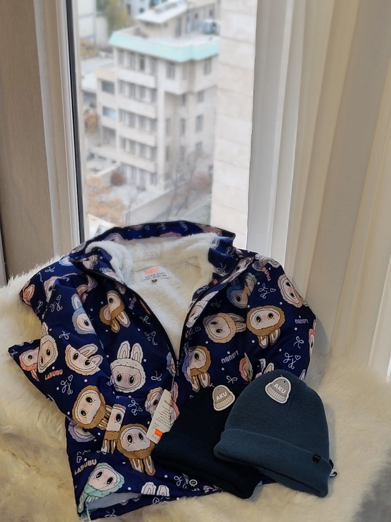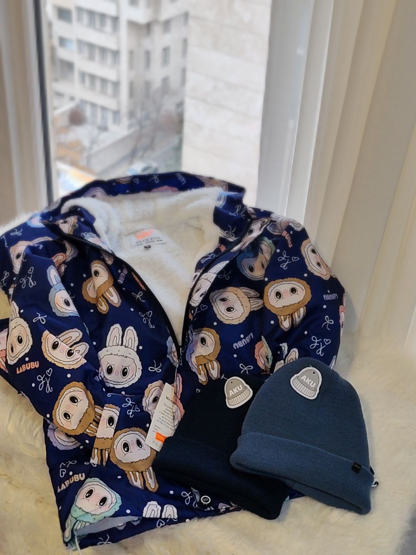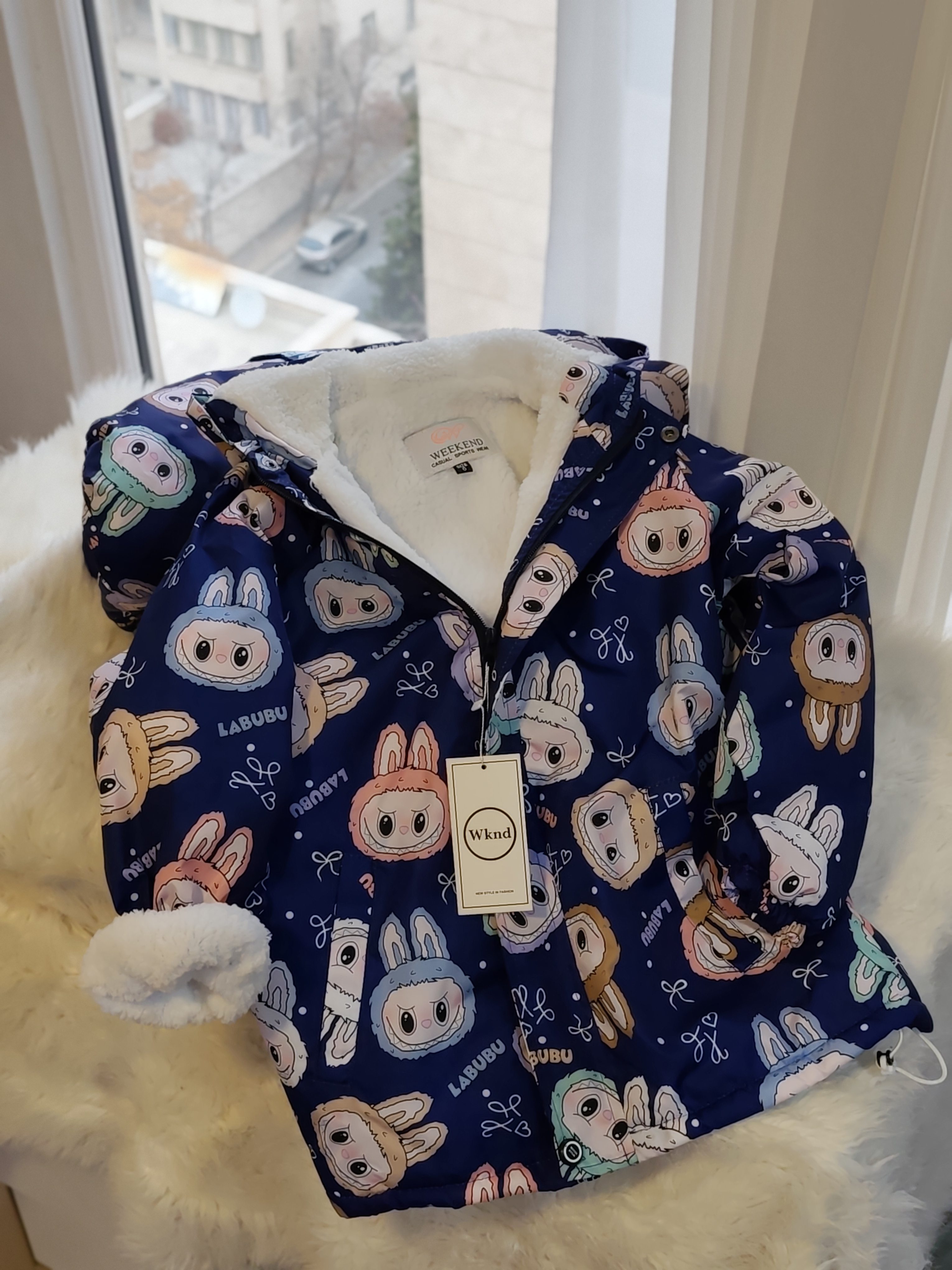 شارژ مجدد ✅کاپشن سوییشرتی ضد آب سبک دخترانه طرح لبوبو ۹-۱۳ سال