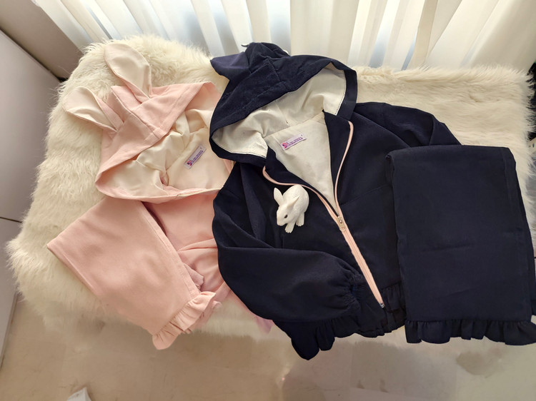توضیحات تکمیلی: سویشرت و شلوار کبریتی ریز،کلاه سرخود خرگوشی دارد،دارای دو رنگ صورتی و سرمهای،زیپ دندون درشت،سویشرت جیب میخوره ،سر آستین کش میخوره،پایین سیشرت و همچنین پایین شلوار چیندار،شلوار کمر کش از بالا تا پایین راسته و آزار