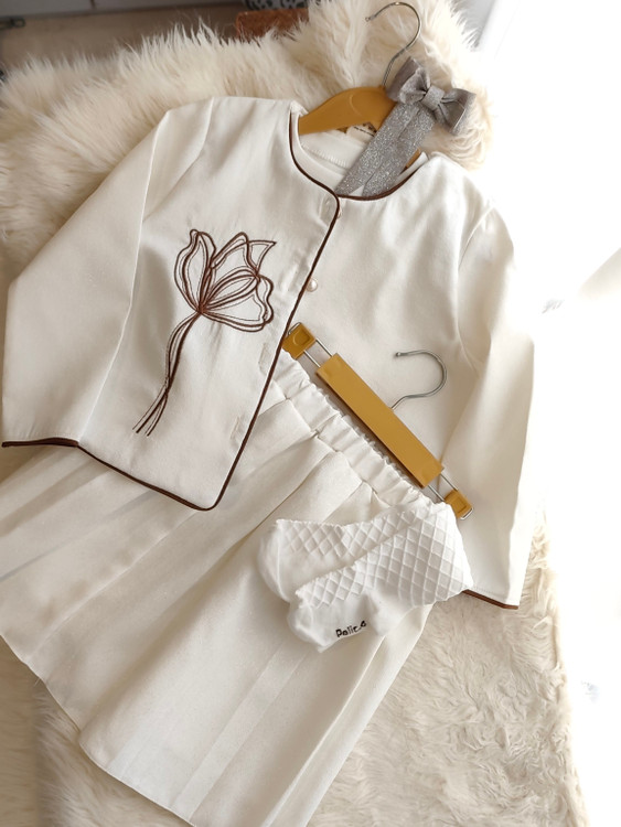 توضیحات تکمیلی: سه تیکه گلدوزی شده،کت گلدوزی شده داخل کت و دامن تمام آستر دوزی شده،و همچنین روی کت گلدوزی بسیار زیباو مغزی دوزی شده ،جنس پارچه زری دوزی ، تاپ فانریپ ، دامن پر چین و کش پهن