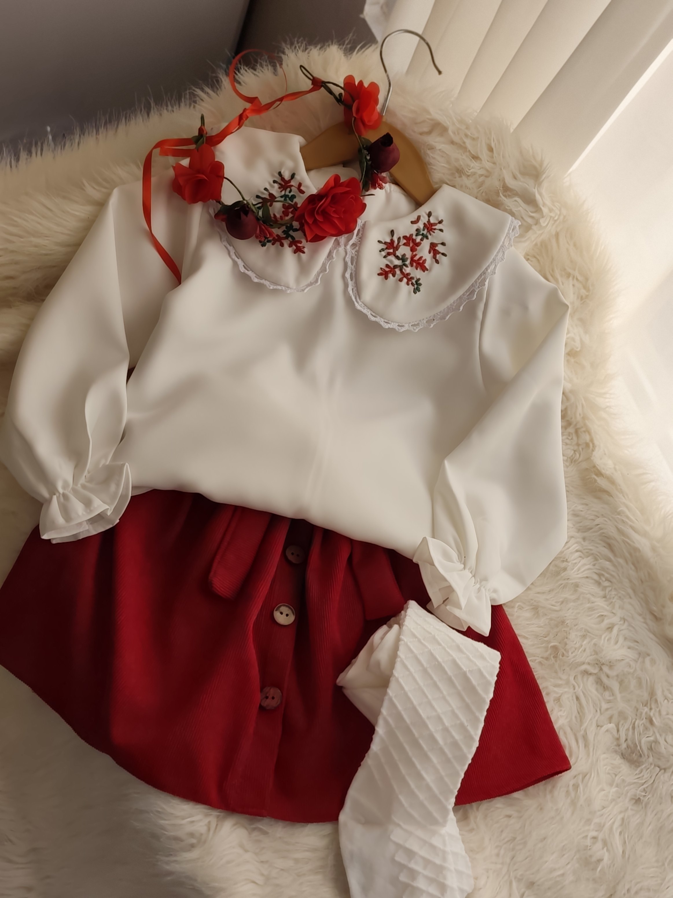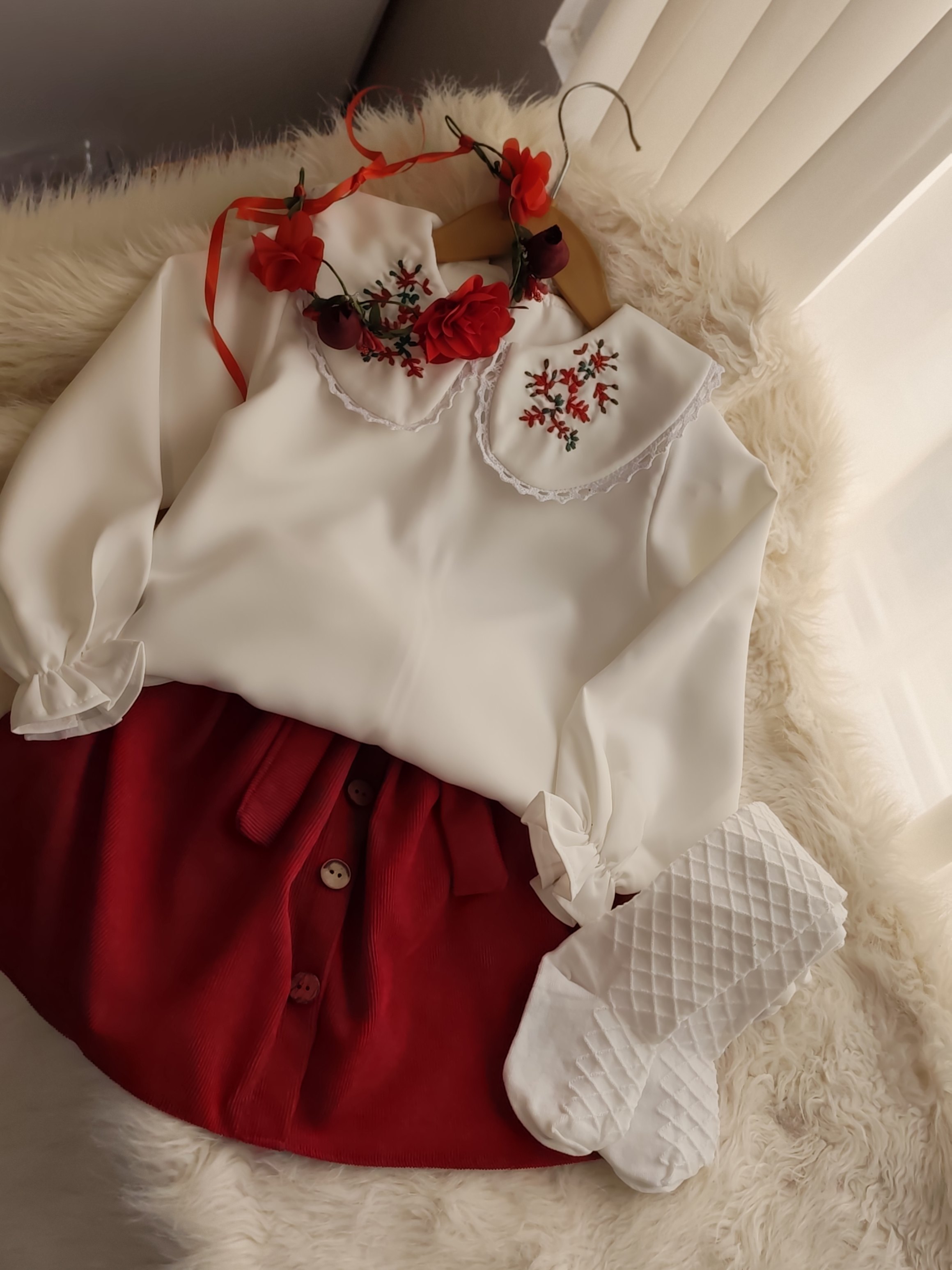 ست شومیز مازراتی یقه ب ب گلدوزی شده پشت شومیز زیپ مخفی بهمراه دامن کبریتی کمر کش پرچین ، چهارفصل مناسب فصل پاییز 🍁 🍂 زمستان ❄️ ☃️ و بهار 🌸🌺🍀تضمین دوخت و کیفیت