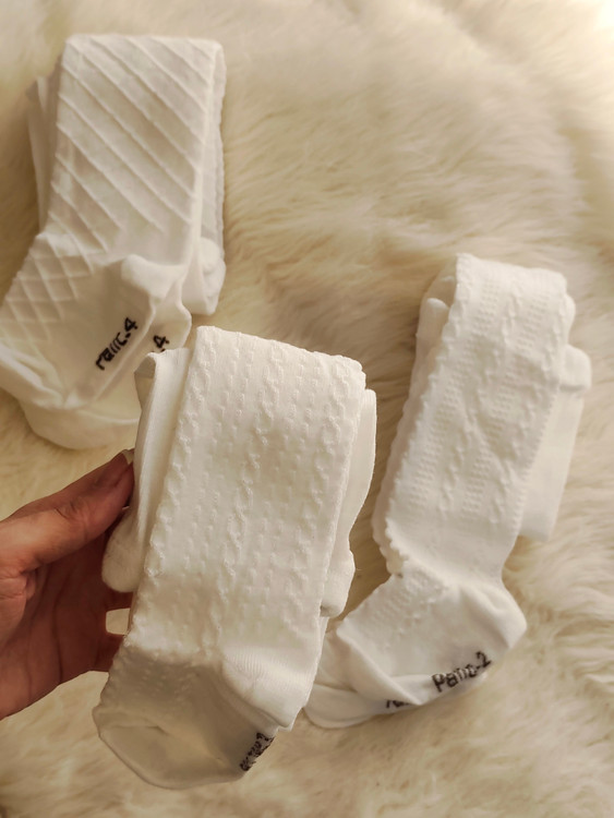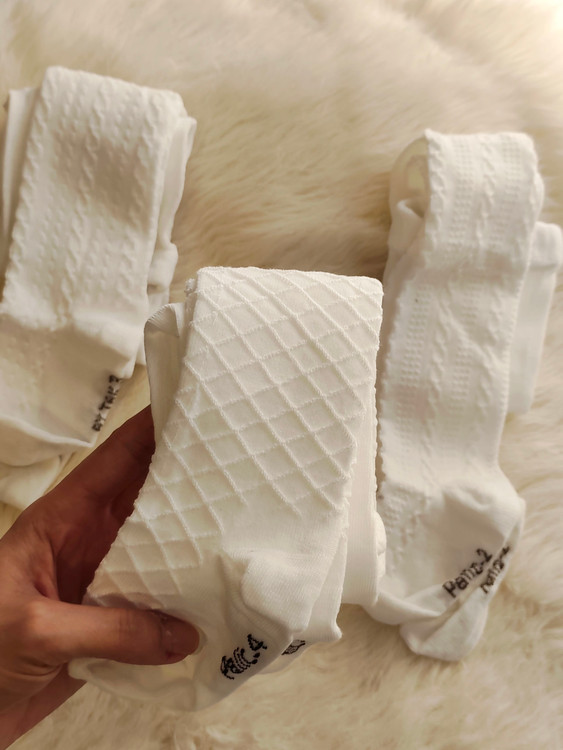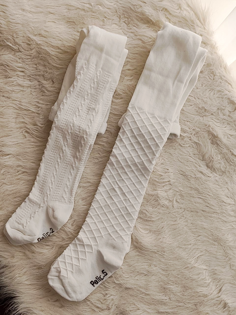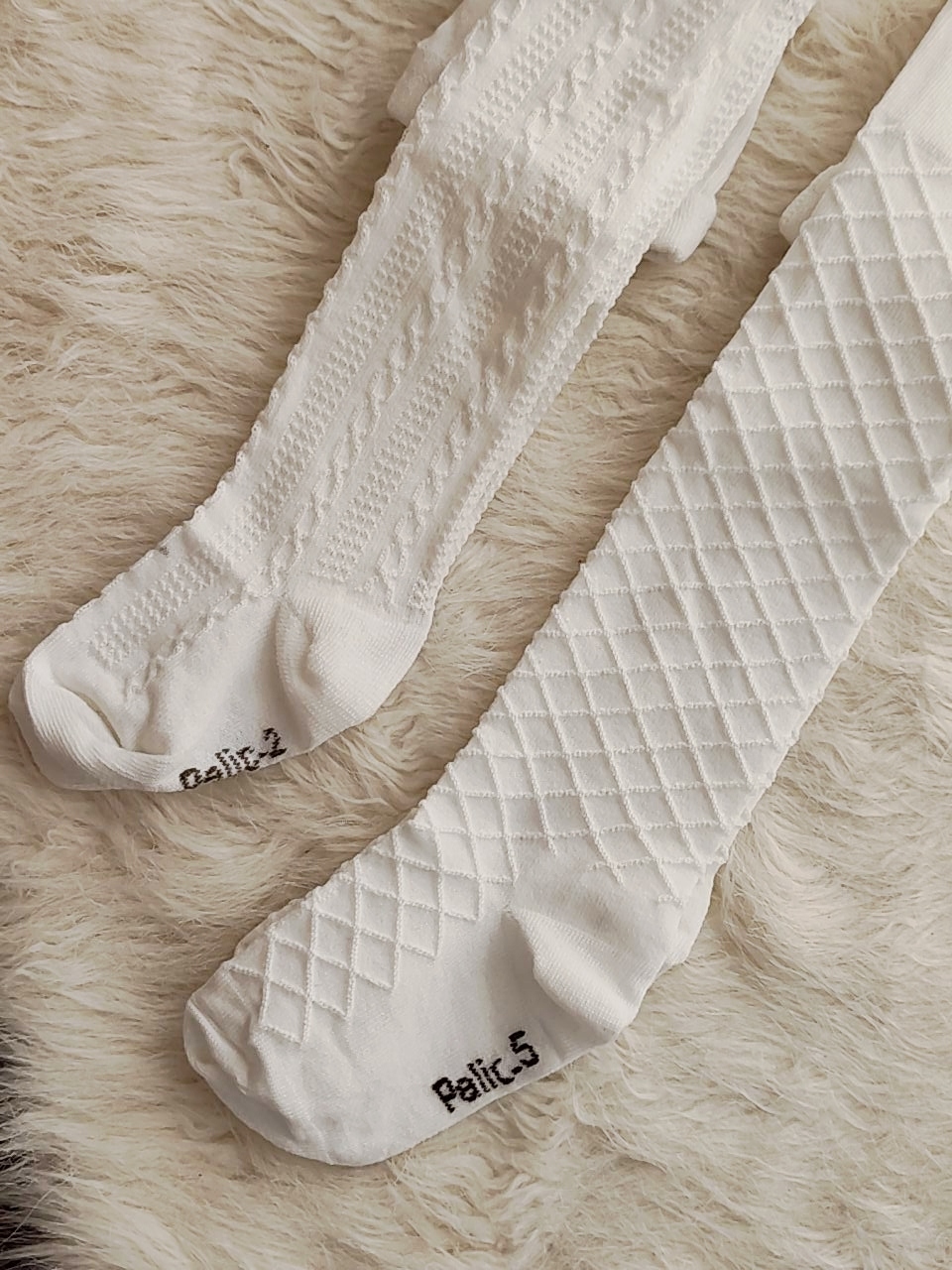 جوراب شلواری سفید تمام نخ با کیفیت در دو طرح لوزی و زنجیری