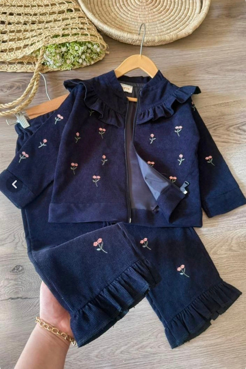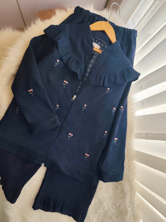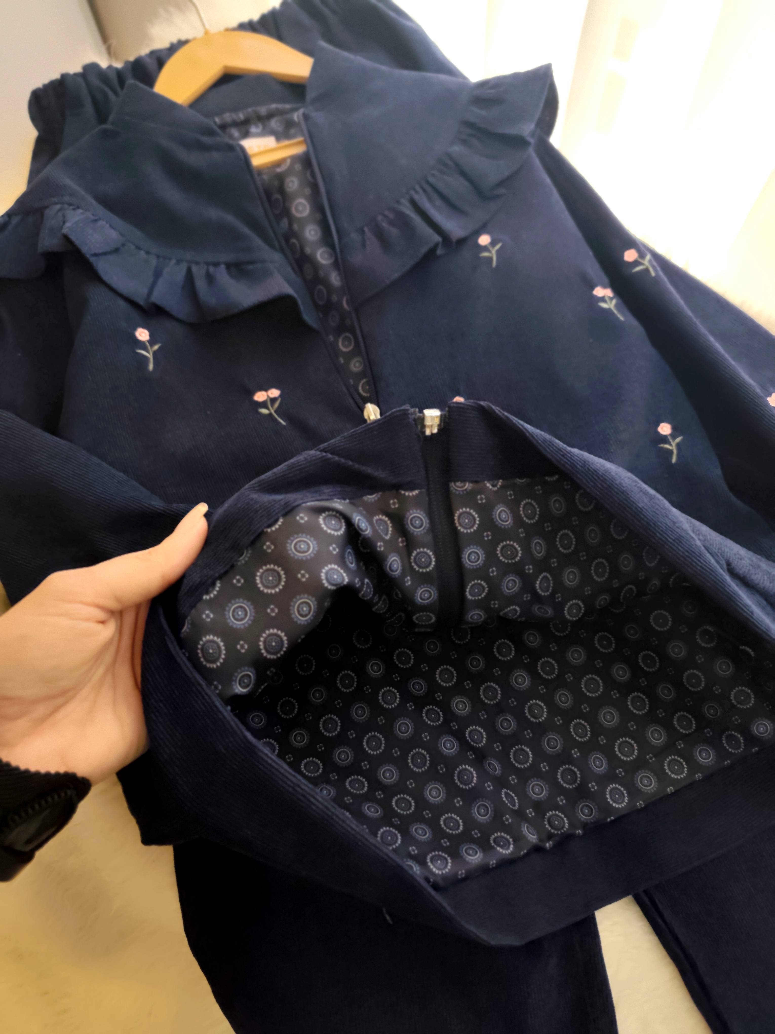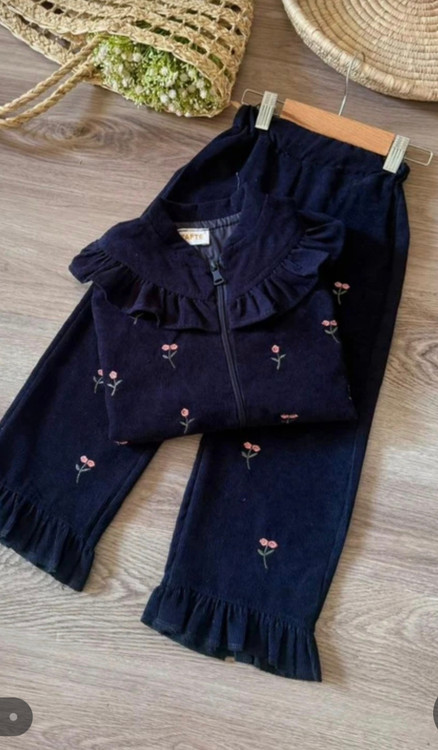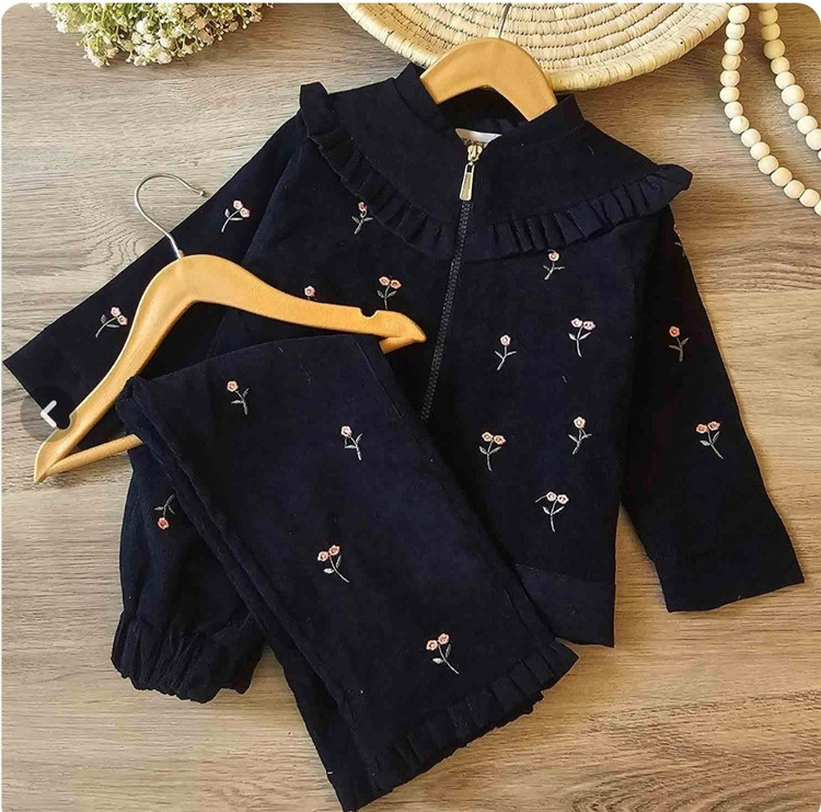 کالکشن بهاری 🌺 🌸 سوییشرت و شلوار کبریتی ریز آستر دار دخترانه بهمراه گلدوزی سایز 45-60