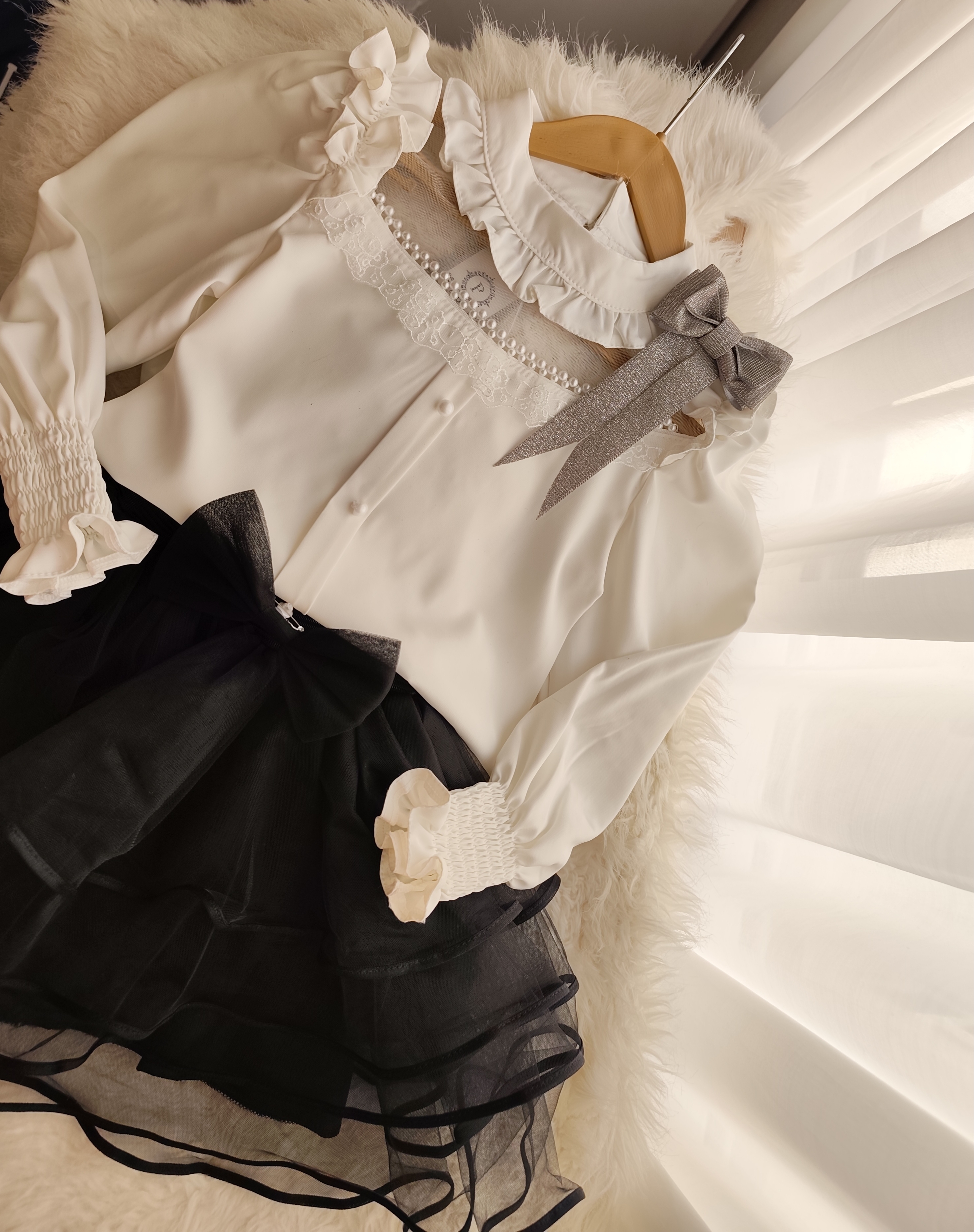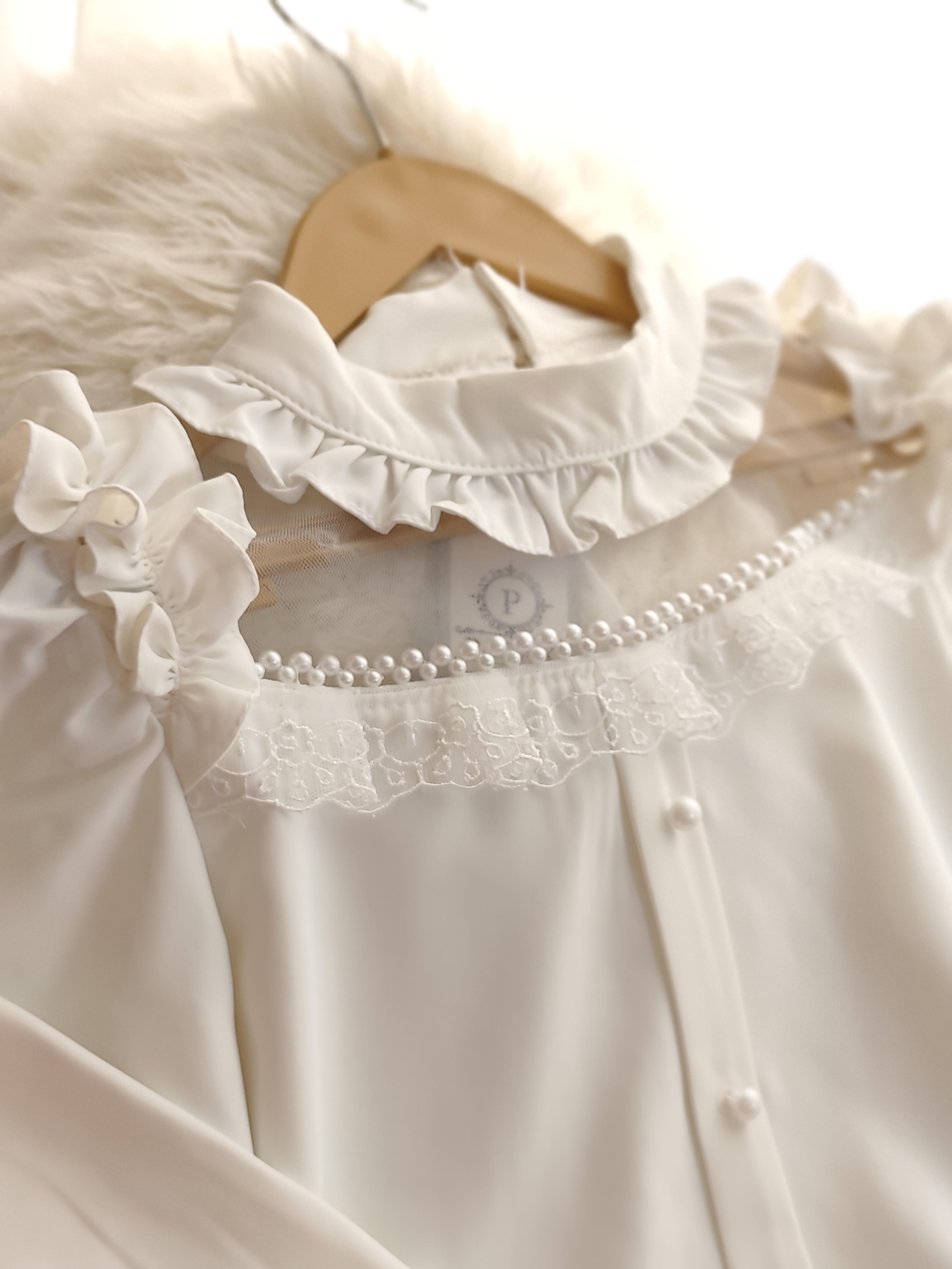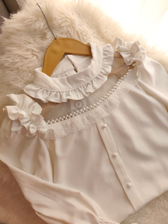 شومیز مازراتی درجه یک و گرم بالا آستینها کش پهن کار شده قواره و دوخت ۱۰۰ در ۱۰۰ تضمینی کمههای مرواریدی جلوی لباس دکور هست همچنین مروارید دوزی شده جلوی یقه تور دانتل بسیار با کیفیت کار شده سایز ۴۵ـ۶۰