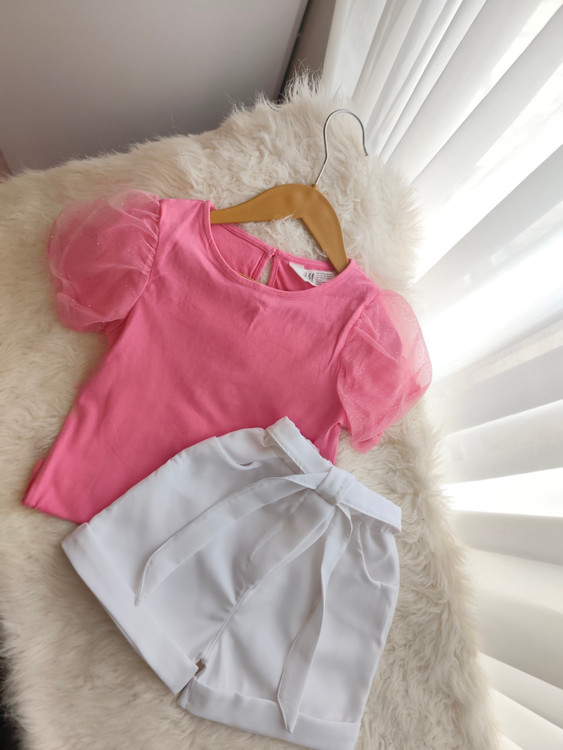 تیشرت تک پرطرفدار وارداتی برند H&m بسیار نرم و لطیف قسمت آستین تور شاین دار کار شده طرح جذاب بسیار زیبا و با کیفیت کار شده صد در صد نخ پنبه. دوخت ، کیفیت برش صد در صد تضمینی یقه گرد و آستین کوتاه