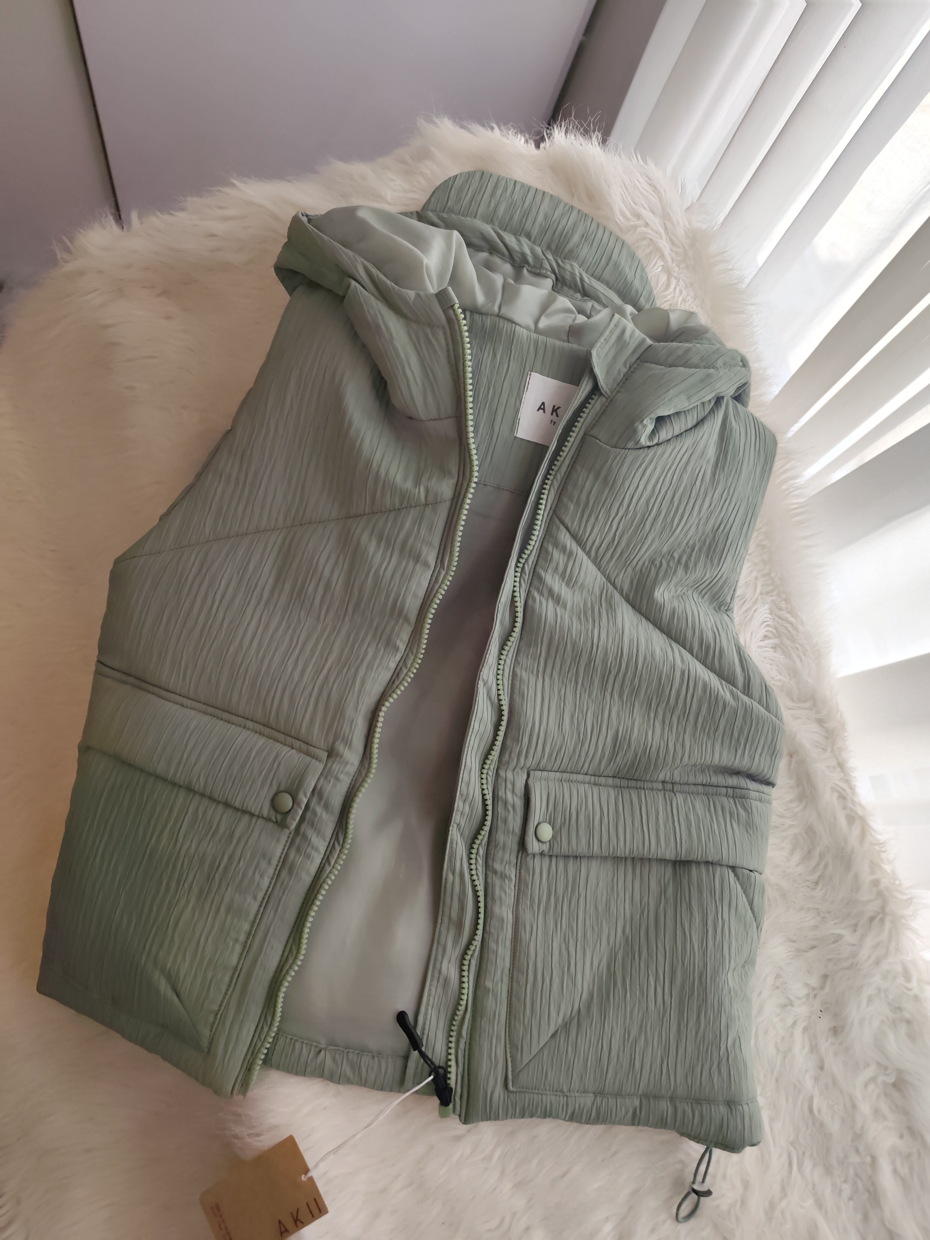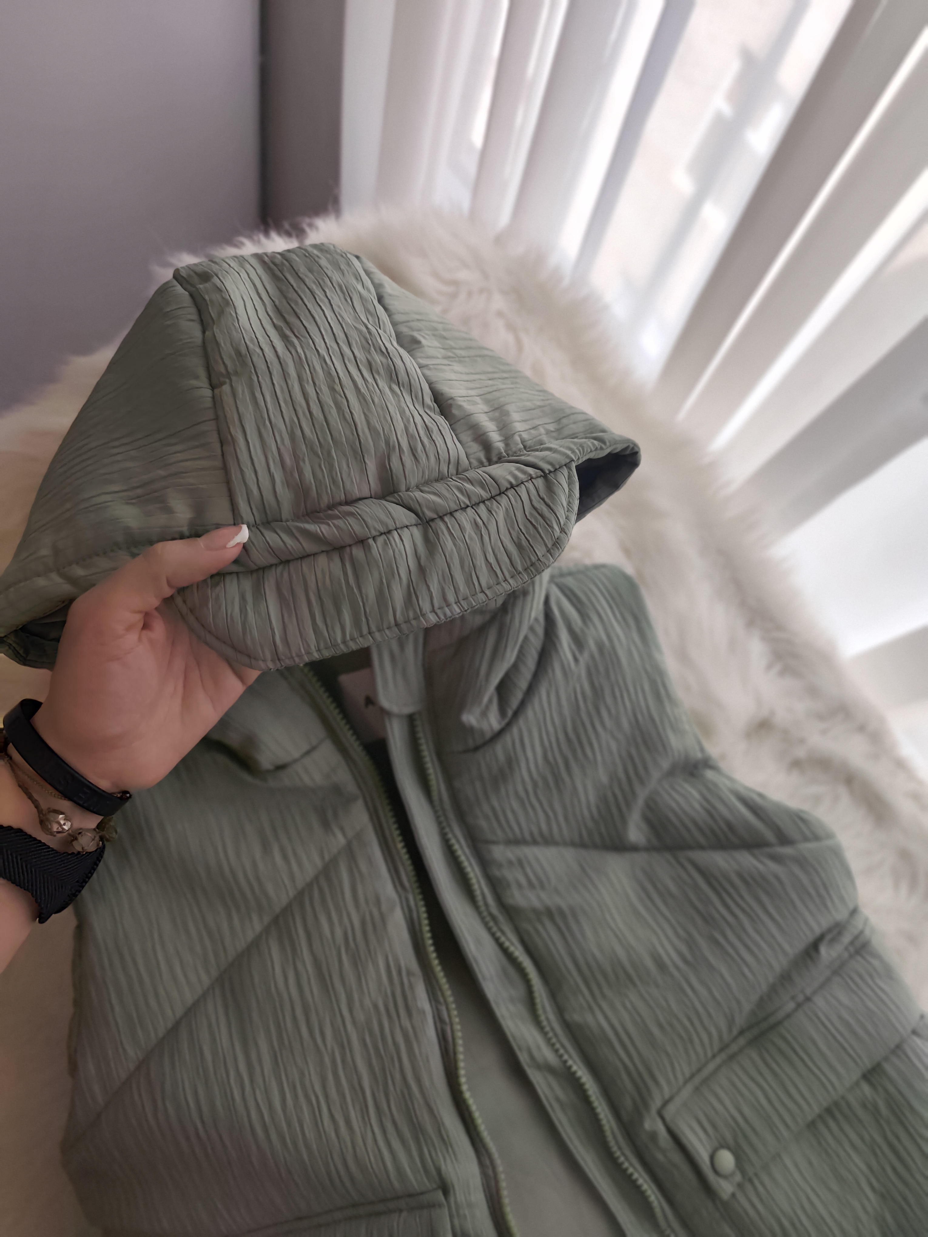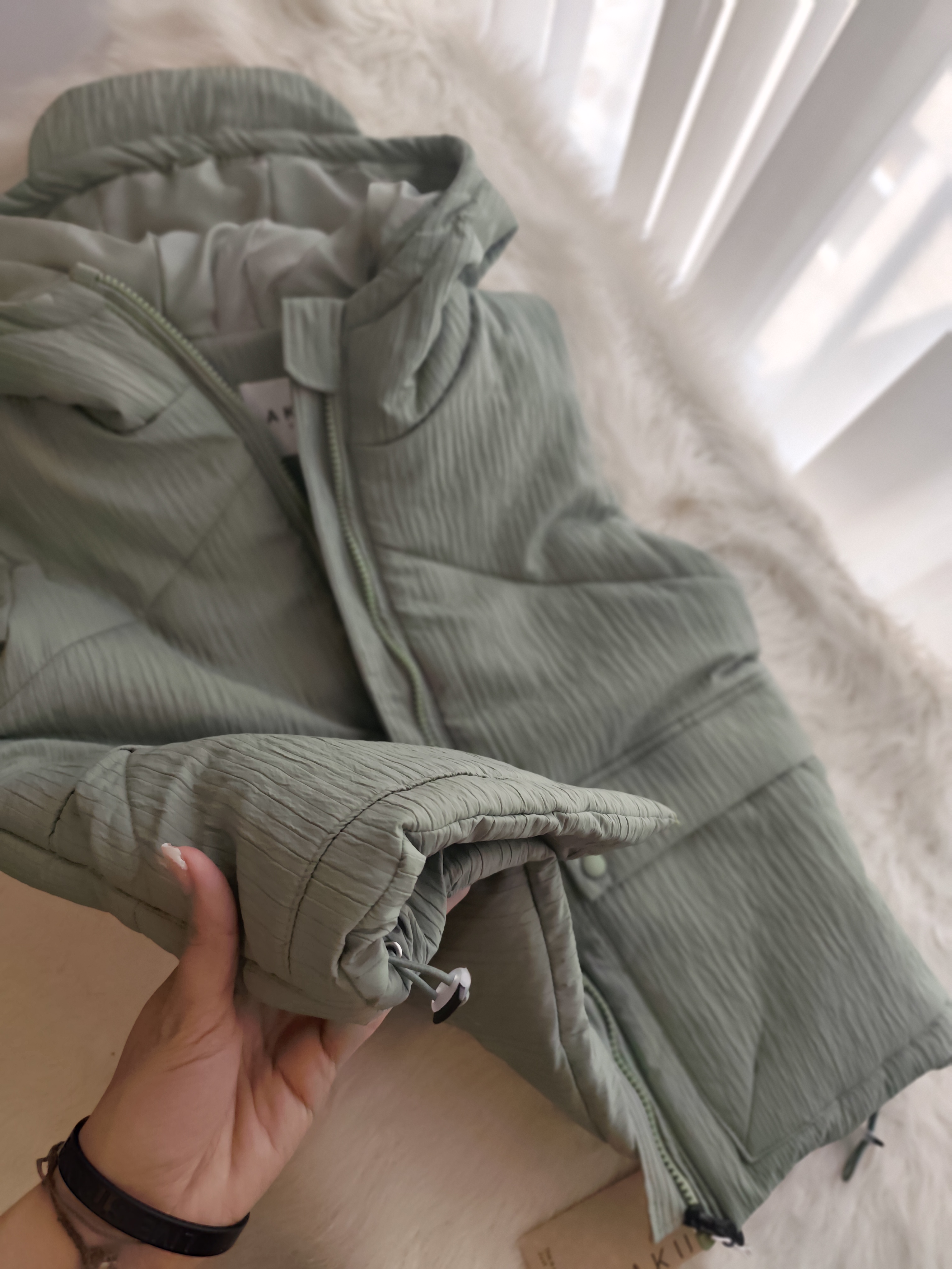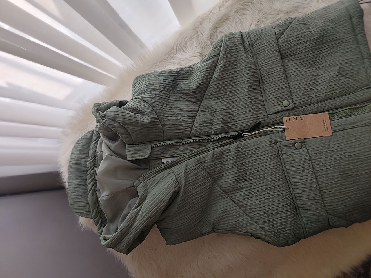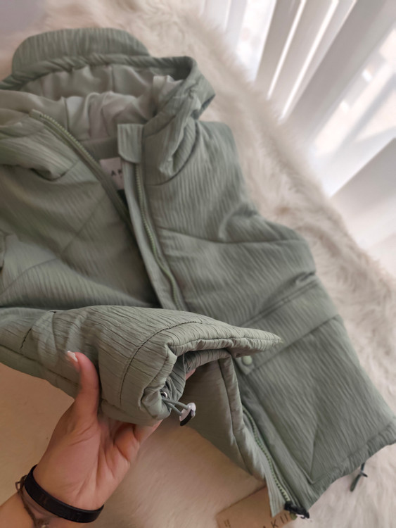 پافر اسپرت رنگ سبز ماچایی ، داخلش پشم شیشه بکار رفته شده بسیار گرم ، جیب میخوره ، کلاه سر خود داره ، زیپ دندان درشت ، پایین کار در صورت دلخواه کار میشه