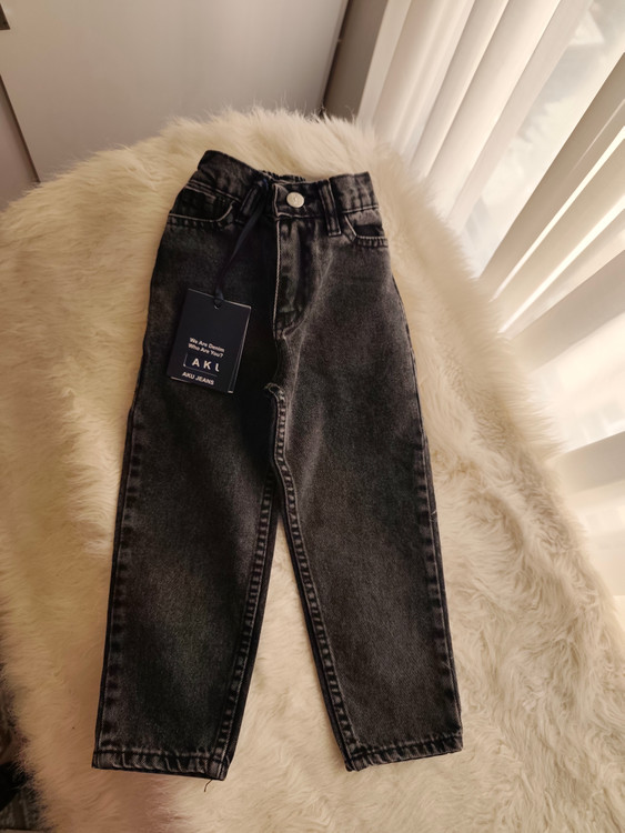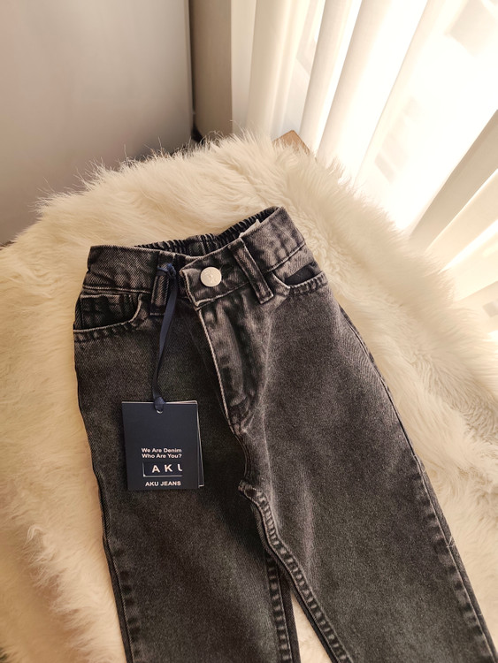 شلوار جین زغالی مام فیت ، پشت شلوار کش دار ، جین گرم بالا با کیفیت از برند Aku