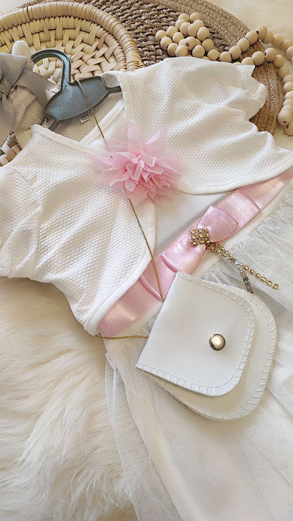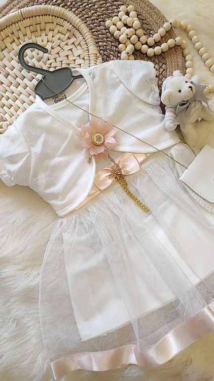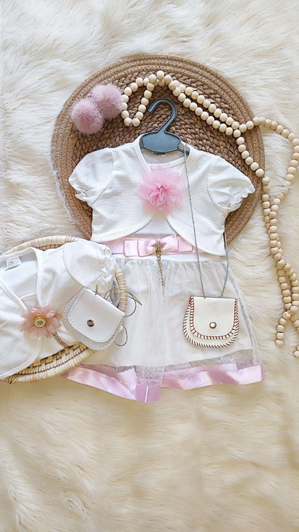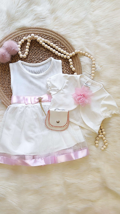 پیراهن 3تیکه دخترانه ترک (سارافون+ کت+کیف)۹ ماه ب بالا