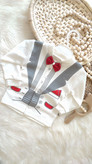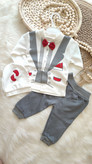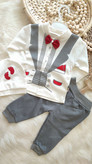 ست بلوز مجلسی ب همراه شلوار و کلاه پسرانه تمام نخ مدل پاپیون برجسته ترک